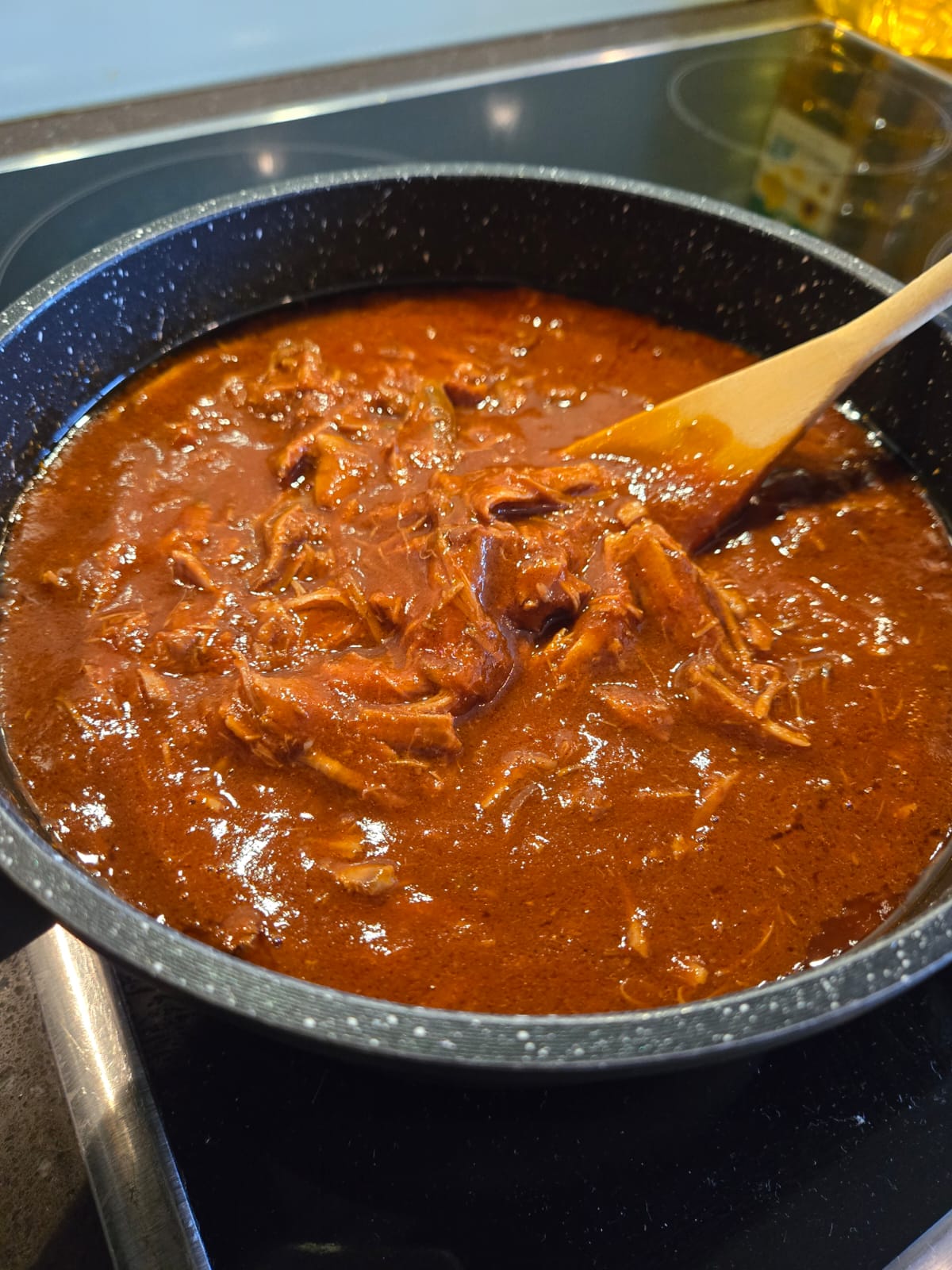 5. When it reaches fork tenderness take the meat out of the sauce and shred it before placing it back in ragu sauce at ultra low heat.